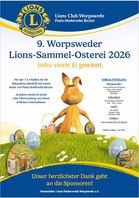 Mit vertreten war auch der Lions Club Paula Modersohn-Becker aus Worpswede, der wie in den letzten Jahren bei dieser Veranstaltung sein neuestes Lions-Sammel-Osterei vorstellte. Zum 150-jährigen Geburtsstagsjubiläum von Paula Modersohn-Becker wurde das Motiv "Zwei Kinder in der Sonne am Wiesenzaun stehend" gewählt, das im Jahr 1902 entstanden ist in einer Phase, in der sich die Künstlerin intensiv mit der Darstellung von Kindern im Sonnenlicht beschäftigte.